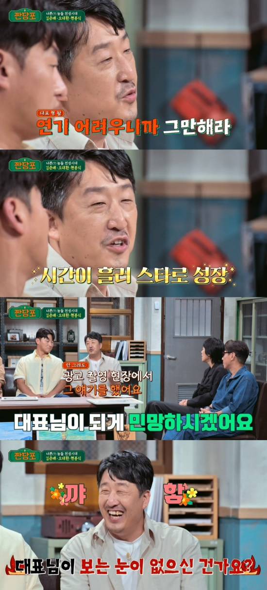 하지만 손석구는 시간이 흘러 스타로 성장했다고. 현봉식은 "대표님이 (손석구와의) 광고 현장에서 이 이야기를 했다. '그때 오해했었다'고 이야기를 했다"고 재회한 대표와 손석구의 이야기를 전했다.