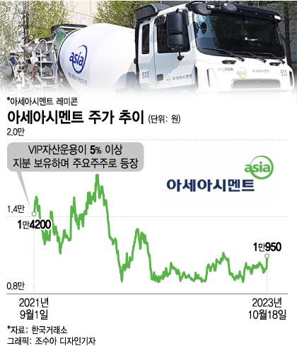 VIP자산운용은 2021년 9월7일 지분 5% 이상 보유했다고 공시하며 아세아시멘트 주요주주로 등판했다.