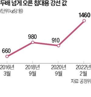 담합 시작 전인 2016년 3월 정밀기계용 강선 가격은 ㎏당 1250원이었지만 지난해 2월에는 1750원으로 약 40% 올랐다. 침대 스프링용 제품은 이 기간 660원에서 1460원으로 121% 상승했다. 공정위는 기존 규정대로라면 과징금 총액이 390억원이지만 강화된 새 규정을 적용해 과징금이 160억원가량 늘었다고 밝혔다.