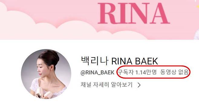 18일 기준 영숙의 유튜브 '백리나 RINA BAEK' 구독자는 1만 1400명이다.