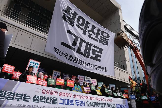 그러나 이 권한을 환경부는 소신 있게 행사하지 못하고 정권의 하명을 받들듯 개발부처의 이중대 노릇을 하고 있다. 그 결과 지금 설악산은 위기에 놓여있다. 환경부의 환경영향평가 조건부 협의(동의) 이후 행정안전부의 지방재정투자심사도 조건부로 통과되었다. 그리고 지난 13일 국립공원공단은 공원사업 시행을 조건부 허가했다.