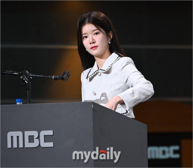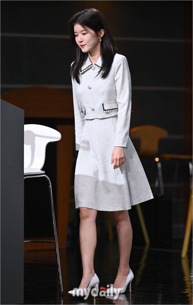 박소영 아나운서는 그레이 톤의 깔끔한 투피스를 입고 진행자로 참석했다.