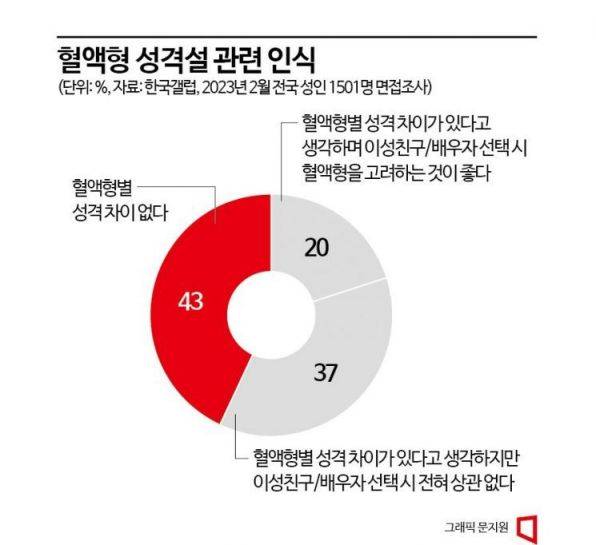 한국인 10명 중 6명, "혈액형과 성격은 관련 있다"