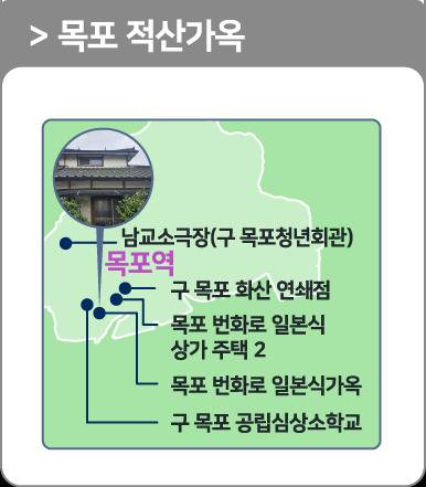 목포는 다른 지역보다 유독 적산가옥이 많다. 조선 말인 1897년, 조선은 항구를 개방하고 무역을 시작했다. 그리고 매립 지역에 일본인들이 하나둘 모였다. 일제강점기에는 본격적으로 일본인이 몰려 일본인 마을이 형성됐다. 번화로부터 근현대역사관이 이어지는 거리에는 일본 상류층부터 상인까지 다양한 집들이 남아있다. 그 가치를 인정받아 거리 자체가 근대문화유산공간으로 지정됐다.