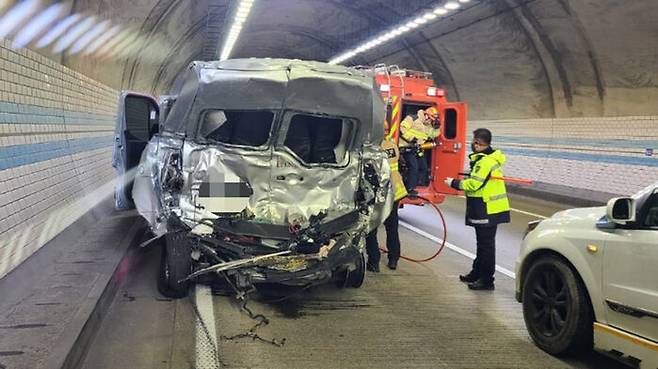 수리티터널 버스-승합차 추돌사고…사망자 4명으로 늘어