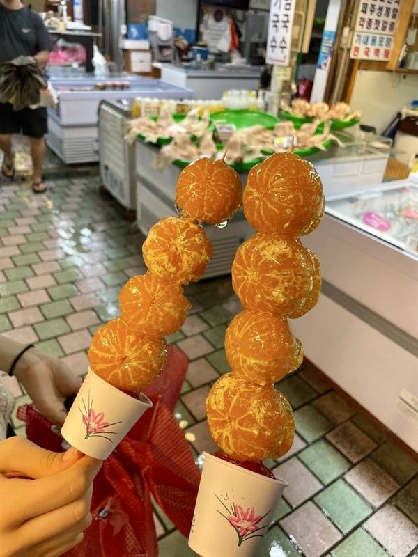 | ▲ 감귤 탕후루 제주도에서 맛본 감귤 탕후루는 여행자의 피로를 풀어줬다. |
