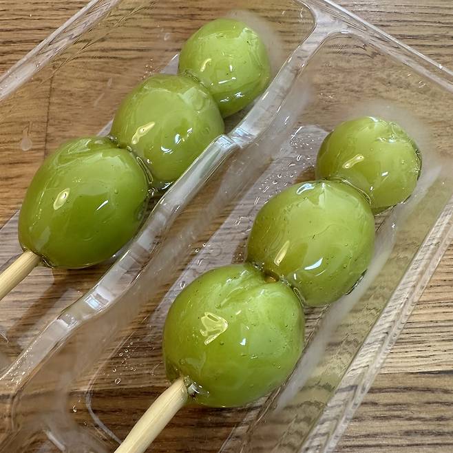 | ▲ 샤인머스킷 탕후루 이젠 편의점에서도 자체 출시한 탕후루를 판매한다. |