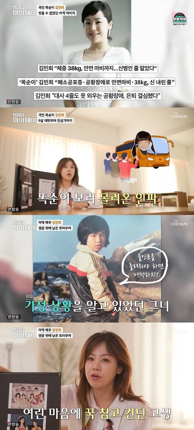 김민희는 80년대 브라운관을 독차지했던 드라마 '달동네'에서 '똑순이' 역할로 많은 사랑을 받았다. 하지만 아역 배우에게 열악했던 촬영 현장은 지금까지 그녀의 트라우마로 남았다고 고백했다.