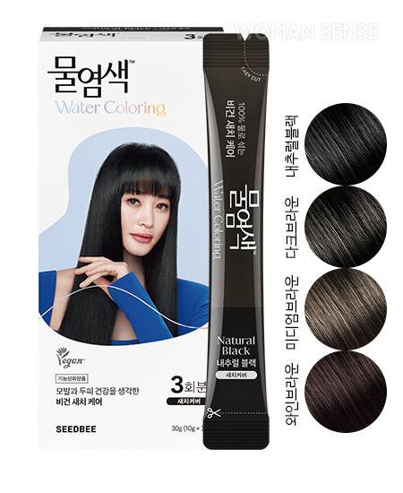 보통 물염색의 화학 2제 없이 100% 물과 허브 컬러 파우더만 섞어 완성한 염색약으로, 씨드비의 독자적인 기술력을 적용했다. 일반 염색약 특유의 불쾌한 냄새가 없으며, 은은한 라벤더 향이 특징이다. 36가지 자연 유래 파우더가 두피 자극과 머릿결 손상을 최소화하며 손상모의 보습까지 케어한다. 어두운 색상만 있는 기존의 새치 염색약과는 다르게 취향에 맞게 다양한 컬러 선택이 가능하다. 3회분 2만8천원.