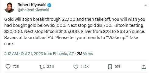 이날 로버트 기요사키는 달러를 가짜 화폐에 비유하며 투자자들이 달러 대신 비트코인, 금, 은에 주목해야 한다고 강조했다.