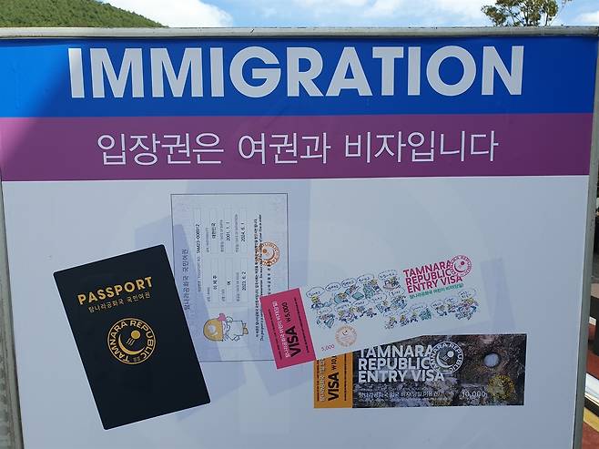 | ▲ 탐나라공화국 여권과 비자 '국가개념 테마파크' 탐나라공화국에 들어가려면 입장권 구입 대신 여권이나 비자를 받아야 한다. |