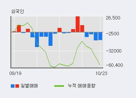 같은 기간 이 종목의 거래비중은 외국인과 개인이 각각 22.8%, 54.6%로 비중이 높다.