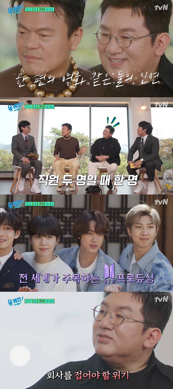 24일 tvN '유 퀴즈 온 더 블럭'은 오는 11월 1일 방영 예정인 방시혁, 박진영 편 예고 영상을 공개했다.