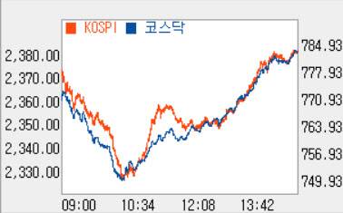코스닥, 닷새 만 2%대 반등해 780선…셀트리온株·YTN '급등'