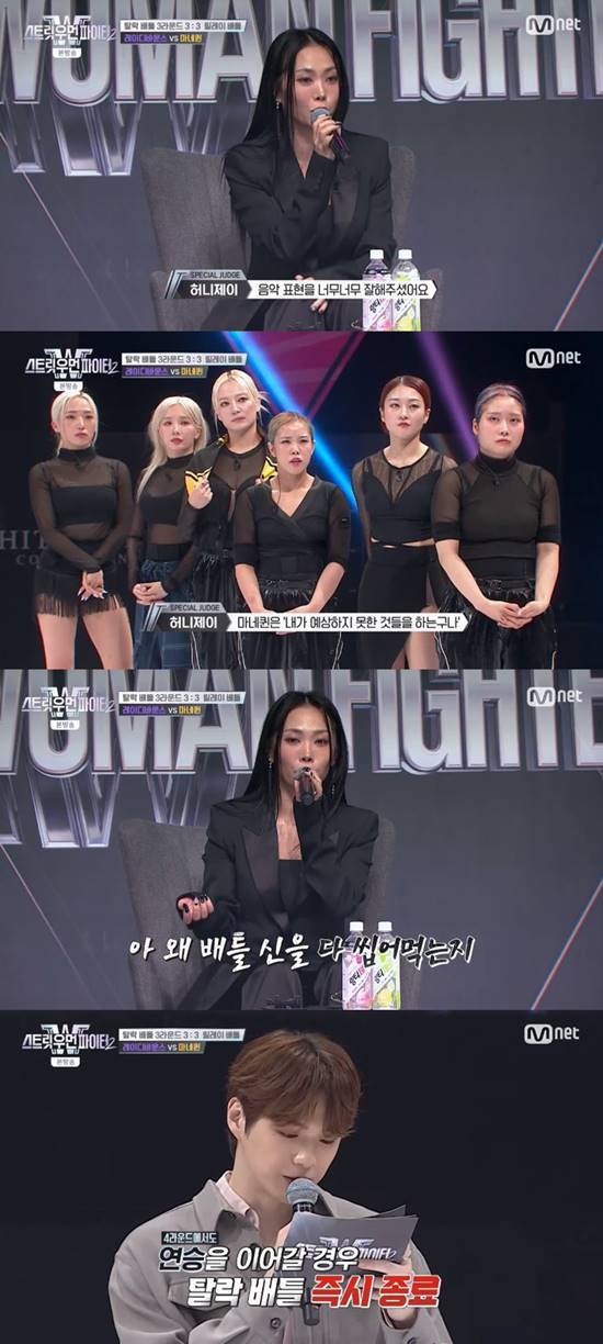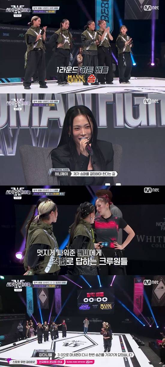 이어 허니제이는 "레이디바운스는 소품 활용과 댄싱 활용 부분이 따로 있었고, 마네퀸은 하나가 돼서 잘 흘러갔다. 배틀이다 보니 에너지 있는 팀을 선택했다"라고 레이디바운스를 선택한 이유를 덧붙여 설명했다.