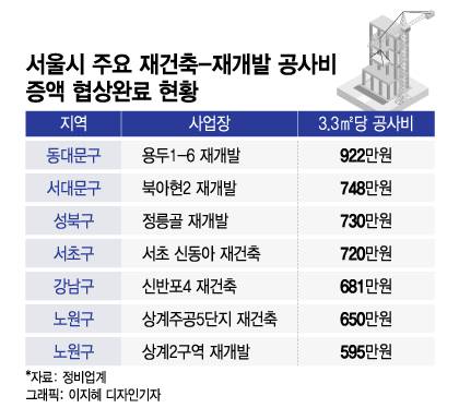 조합은 조합원들에게 보낸 소식지에서 "코로나 장기화, 우크라이나-러시아 전쟁, 고금리 사태 등 국내외 악재들이 겹치며 원자재비 및 인건비 등이 폭등해 공사도급 단가가 급상승하게 돼 시공사의 공사비 증액 요구에 맞춰 협상을 진행했다"며 "수차례 논의 등 힘든 과정을 거치며 어렵게 3.3㎡당 595만원으로 공사비 협상을 마무리했다"고 밝혔다.