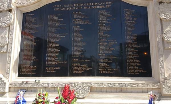 | ▲ 발리 폭탄테러 현장에 세워진 추모비의 희생자 명단. 국적 별로 모든 희생자 이름이 새겨져있다. |