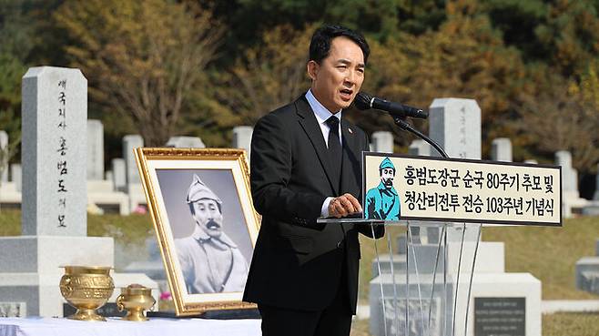 박민식 국가보훈부 장관은 오늘 추모사에서 을미사변 직후부터 의병과 독립군을 이끈 홍범도 장군의 행적을 기리며 "봉오동, 청산리 전투의 승전은 독립운동사에 길이 남을 업적이 됐다"며 "일제의 압제 속에서 우리 민족은 때때로 좌절은 했을지언정 독립에 대한 희망의 끈은 놓지 않았다"고 밝혔습니다.