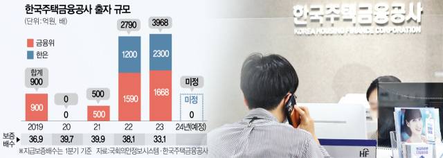 25일 국회에 제출된 금융위원회의 ‘2024년 예산안’ 및 ‘국가재정운용계획’에 따르면 금융위의 주택금융 관련 출자 예산이 내년도 예산안에서 전액 삭감된 것으로 확인됐다. 연말 자체 예산 심사를 앞둔 한국은행에서도 관련 예산 논의는 진행되지 않은 것으로 알려졌다. 금융위와 한은은 올해 특례보금자리론 재원을 마련하기 위해 주금공에 각각 1668억 원, 2300억 원을 출자한 바 있다. 주금공법은 주금공이 적정한 지급보증배수(지급보증 잔액/자본)를 유지할 수 있도록 정부와 한은이 출자를 통해 자본금을 지원하도록 하고 있다.