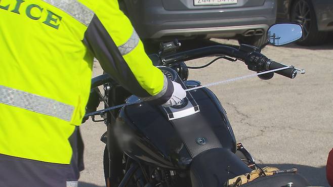 시선을 가장 끄는 건 유독 높아 보이는 오토바이 핸들입니다. 이른바 '만세 핸들'입니다. 이번에 적발된 오토바이의 경우, 제원표에 나온 높이보다 35㎝나 높았습니다. 차량의 구조나 장치를 변경하려면 자치단체의 승인을 받아야하는데, 승인없이 무단으로 개조했습니다.