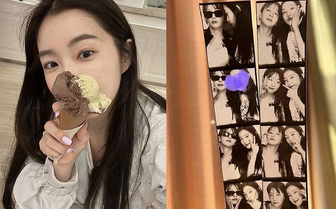 이날 아이린은 멤버 슬기와의 일상을 공개하기도. 두 사람은 다정하게 얼굴을 맞댄 채 다양한 포즈를 지으며 분위기 있는 스티커 사진을 완성했다. 두 사람의 미모가 워낙 뛰어나 우열을 가릴 수가 없다. 다른 게시물 속 아이린은 아이스크림콘으로 얼굴을 가린 채 귀여운 표정을 지어 팬들의 마음을 설레게 했다.