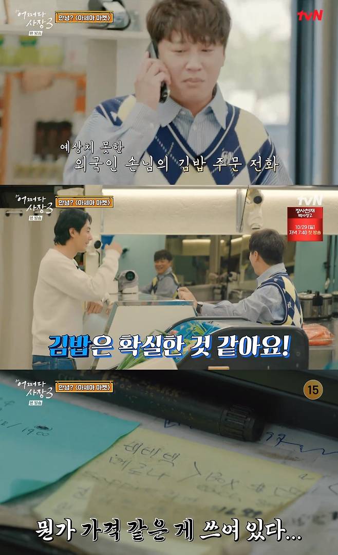 영업 시작도 전에 전화가 걸려왔고 차태현은 "어떻게 받아야 하냐"며 버벅거렸다. 외국인의 김밥 주문에 당황한 차태현은 임시 휴업일임에도 불구하고 김밥 10개 주문을 겨우 받아냈다.
