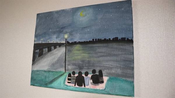 이건 재현이 친구가 그려준 그림인데, 재현이랑 함께 어울려 놀던 친구들 모습이래요. 이 중에 셋이 지금은 세상에 없네요. 저건 마포대교예요. 나란히 앉아 한강을 봤던 날을 기록한 거래요.