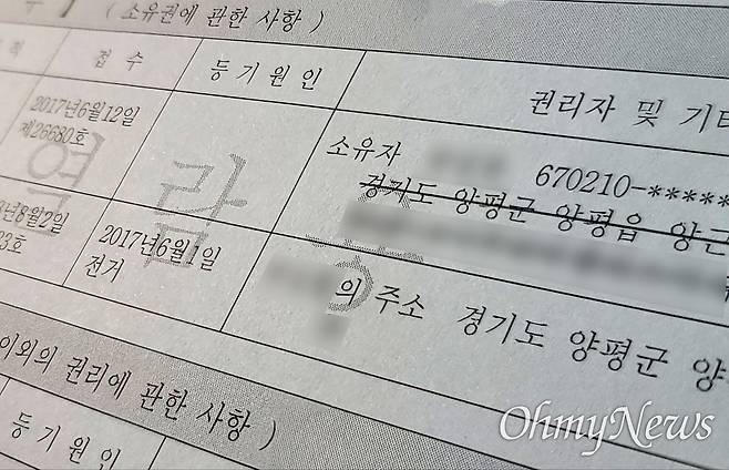 | ▲ 최은순씨 가족회사인 이에스아이엔디 측이 양평공흥지구 사업 토사 매립 예정지로 양평군에 당초 신고했던 주소지는 백안리 192번지 등 4개 필지였다. 이들 필지 소유자는 모두 A씨다. 사진은 백안리 192번지 건물 등기부등본. |