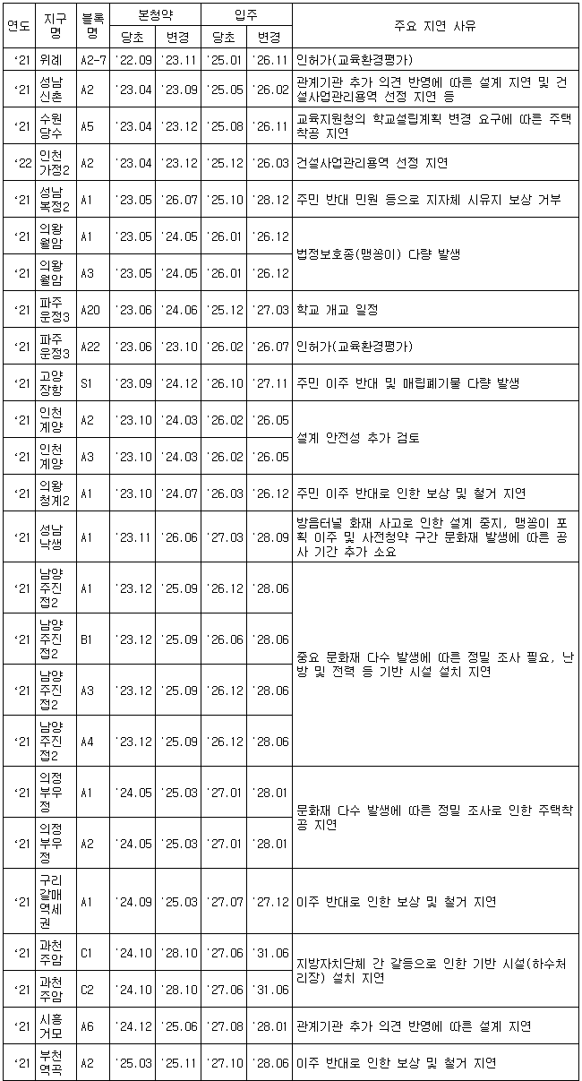 [표] 사전청약 실시 후 지연 예상 25개 사업 블록 현황