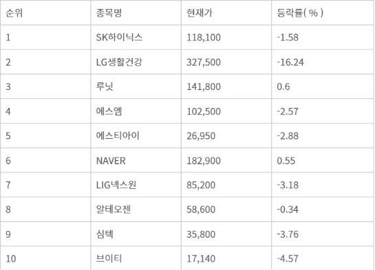 <주식초고수 10.27 오전 09시 30분 순매도 상위 10종목>