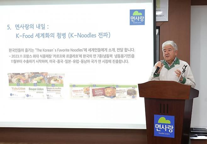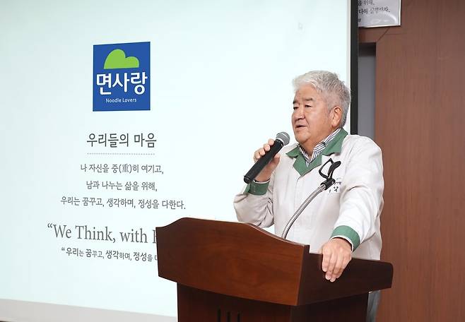 식사 후 정세장 면사랑 대표와 기자 간담회가 진행됐다. 백발인 그는 하루하루 열심히 회사를 운영하다 보니 어느새 30년이 됐다며 소탈하게 간담회를 이끌었다.