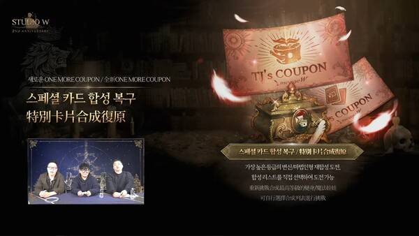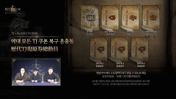 출연진은 2주년 기념 프로모션도 풍성하게 준비했다며 자신했다. 2주년 프로모션에서는 TJ's Bless Coupon을 제공한다. 역대 모든 TJ 쿠폰 복구 혜택을 누릴 수 있다. 유저들은 해당 쿠폰으로 연말까지 매주 수요일마다 룬, 유료 장비, 변신 합성, 마법인형 합성, 장비 3회 복구 가능하다.