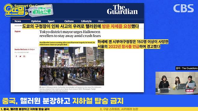 '경제적인 타격이 너무 크다. 이 특수를 노리는 상인들도 있다'라는 반발이 있음에도 불구하고 시부야 구청장은 우리가 이태원과 같은 비극에서 배우고 더 많은 예방책을 마련해 두는 게 중요하다고 강조했다고 하거든요. 그만큼 이번에 좀 단단히 예방하고 있는 게 아닌가 싶습니다.