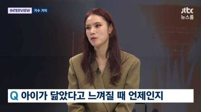 거미는 28일 방송된 JTBC '뉴스룸' 초대석에 출연해 "방송은 오랜만이다. 요즘은 방송보다 아이 육아를 집중적으로 하고 있다"며 말문을 열었다.