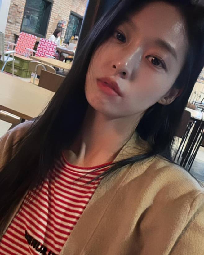 또 다른 사진에서 설현은 레드 컬러의 스트라이프 티셔츠와 브라운 컬러의 가디건을 입고 내추럴한 미모를 자랑했다.