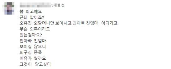 A씨는 수 개월 전부터 유튜브, SNS 등에 "오유진을 낳은 진짜 아빠, 엄마는 왜 방송에 노출되지 않고 외할머니만 방송에 나오냐" "생물학적 아빠, 엄마는 어디에 있냐" "진짜 아빠, 엄마는 어디서 무엇을 하고 있을까" 등 댓글을 통해 오유진의 친부모에 대한 의혹을 제기하거나 의심을 드러냈다.