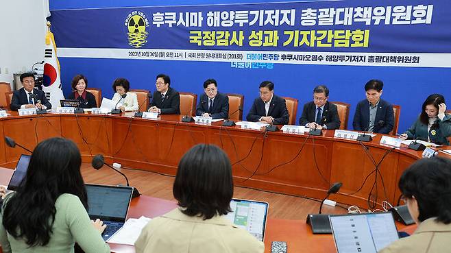 대책위는 간담회에서 이달 국감 기간에 외교통일위원회, 농림축산식품해양수산위원회, 정무위원회, 보건복지위원회 등 국회 7개 상임위에서 민주당 의원들이 후쿠시마 오염수 방류와 관련해 지적한 내용을 소개했습니다.