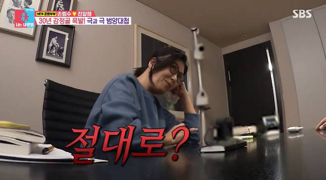 지인들과 시간을 보내고 온 진양혜. 그 자리에 잠시 함께했던 손범수. 집에 돌아온 손범수는 "왜 자꾸 사람들 앞에서 독립 이야기를 하냐. 극단적으로 이야기 하면 별거나 이혼으로 생각할 수도 있다. 그건 절대로 아니지 않냐"고 하자, 진양혜는 "절대로?"라고 해 손범수를 당황하게 했다. 이어 진양혜는 "지금 말들이 나를 위한 조언이냐 주위의 시선 위한 조언이냐"며 "나한테 얘기할 때 싸한 느낌이 들 게 얘기할 때 있다. 잘 정돈된 목소리로 감정 없이 얘길 하게 되면 서운할 때가 있다"고 털어놨다.