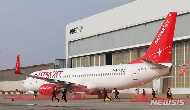 [인천공항=뉴시스] 공항사진기자단 = 31일 서울 강서구 김포국제공항 국제선 계류장 일대에서 열린 '2023년 재난대응 안전한국훈련 김포국제공항 항공기 사고수습 종합훈련‘에서 항공기와 충돌한 건물에서 나온 시민들이 대피하고 있다. 2023.10.31. photo@newsis.com