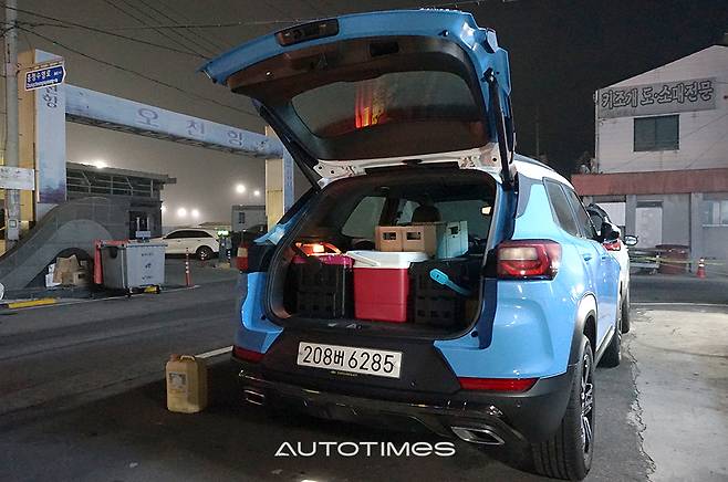 숙소에 도착해 짐을 푼 일행은 짧은 잠을 청한 뒤, 새벽 3시30분에 일어나 배에 오를 준비에 나섰다. 총 4명의 낚시짐을 한 대의 더 뉴 트레일블레이저에 싣고 항구 근처에 차를 세웠다. 꽤나 부피가 큰 낚시가방부터 아이스박스, 긴 낚싯대까지 있었음에도 적재공간은 충분했다. 트레일블레이저가 일반 소형 SUV보다 큰 차체를 지녔기 때문이다. 길이 4,425㎜(액티브 및 RS 기준)로 다른 국산 소형 SUV 대비 20~30㎝ 가량 긴 차체 크기를 확보했다.