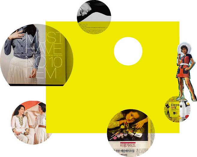 업체들은 대중의 필수품이나 다름없던 잡지를 통해 상품과 브랜드 알리기에 힘썼다. '여성동아’ 광고를 살펴보면 패션, 뷰티, 라이프스타일 등 종류도 다양하다. 공통점은 상품을 시원시원하게 부각한 레이아웃. 유명 연예인이 출연한 광고도 있지만 대부분 친근한 이미지의 일반인 모델을 기용한 점이 눈에 띈다.