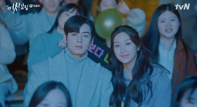 한편 차은우와 문가영은 성균관대학교 예술대학 동문이다. '여신강림' 방영 전 그는 한 인터뷰를 통해 "(가영 누나는) 원래 알던 학교 동문이라 '선배님, 선배님' 하면서 재밌게 잘하면 좋은 작품, 좋은 캐릭터 보여줄 수 있을 것 같다"는 자신감을 보인 바 있다.