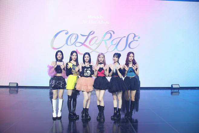 위클리는 1일 오후 2시 서울 용산구 블루스퀘어 마스터카드홀에서 5번째 미니앨범 '컬러라이즈'(ColoRise) 언론 쇼케이스를 개최했다.