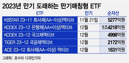 이 가운데 KBSTAR 23-11회사채(AA-이상) 액티브 ETF를 비롯한 KODEX 23-12국고채액티브, KODEX 23-11회사채(AA-이상)액티브, TIGER 23-12 국공채액티브, ACE 23-12 회사채(AA-이상)액티브가 올해 만기다.