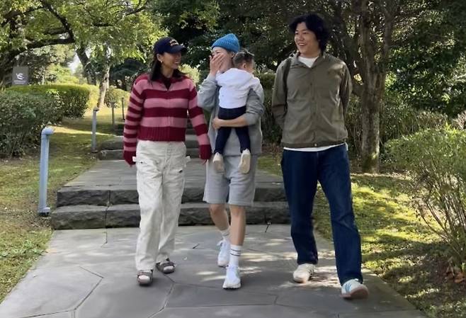 사진 속 성유리는 쌍둥이 딸과 함께 이효리 이상순 부부를 만나 대화를 나누고 있다. 성유리는 이효리의 신곡명 '후디에 반바지'에 맞게 후드티와 반바지 패션으로 센스를 발휘했다.