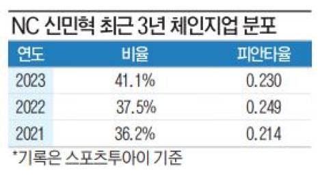 신민혁(24·NC 다이노스)은 흥미로운 투수다. 야구통계전문업체 스포츠투아이에 따르면, 올 시즌 신민혁의 직구 평균 구속은 140.7㎞/h에 머문다. 힘껏 던져도 145㎞/h를 넘지 않는다. 구위형이 아니지만 만만하게 볼 투수도 아니다. 그는 2021년 규정이닝(144이닝)을 채웠고 올 시즌엔 3년 연속 110이닝 이상을 투구했다.