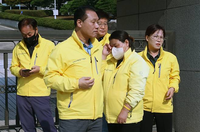 | ▲ 4.16세월호참사가족협의회와 4월16일의 약속 국민연대 관계자들이 2일 오전 서울 서초구 대법원 앞에서 세월호 참사 해경 지휘부에 대한 대법원의 무죄 판결에 마음 아파하고 있다. |