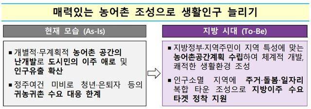 정부가 매력 있는 농촌 조성을 통해 지역의 활력을 높이는 ‘생활인구’를 늘리는 데 나선다.