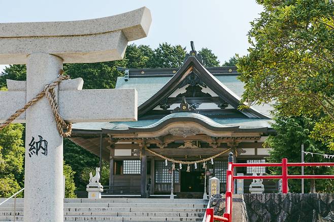 먼저 가라쓰 전경을 보고 시작하자. 가라쓰만과 가라쓰 도심, 송림을 한눈에 담을 수 있는 뷰 포인트, 가가미야마 전망대(鏡山展望台, 284m)다. 정상으로 가는 길도 예술인데, 5km 가량 되는 길은 현지에서도 드라이브 코스로 사랑받고 있다. 계절에 맞는 꽃으로 가득해 갈 때마다 새로운 풍경을 선물한다. 전망대에 앞서 가가미야마 신사를 잠깐 구경하고 가는 것도 괜찮다. 전망대 주차장에서 5~7분 정도만 걸으면 가라쓰를 한눈에 담을 수 있는 공간이 나온다. 푸른 바다와 함께 긴 소나무 숲이 어우러진 장관으로, 보고 또 봐도 놀랄수 밖에 없다.