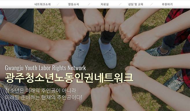 | ▲ 광주청소년노동인권네트워크 홈페이지 갈무리. |